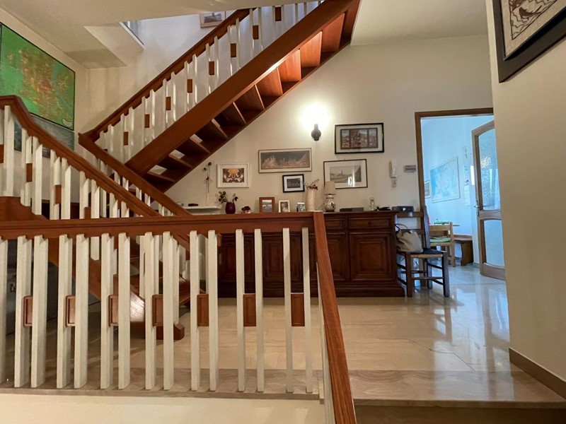 Entrando, sarai accolto da un ambiente versatile che si affaccia direttamente su un incantevole giardino privato di 105 mq, un'oasi di pace perfetta per il tuo relax. Il piano superiore ti sorprenderà con una zona giorno luminosa che si estende su un'ampia terrazza, l'ideale per le cene all'aperto. Questo livello ospita anche un soggiorno/studio, una cucina abitabile, due camere e un bagno. Ma il vero punto di forza è il piano mansardato: uno spazio intimo e funzionale che include uno studio, una camera con bagno privato e una terrazza panoramica di oltre 30 mq con vista mozzafiato.