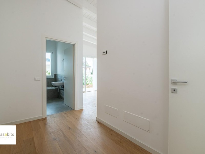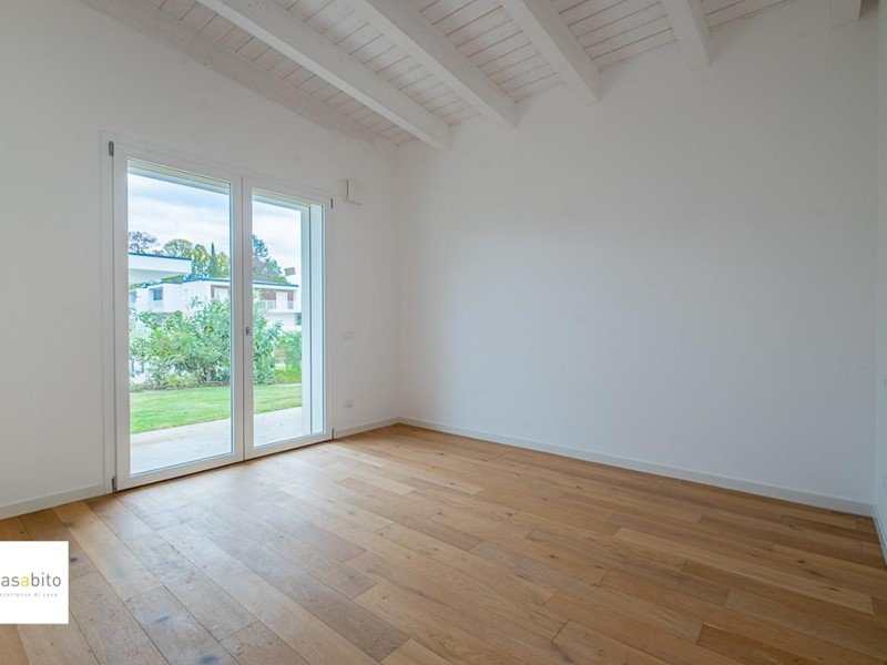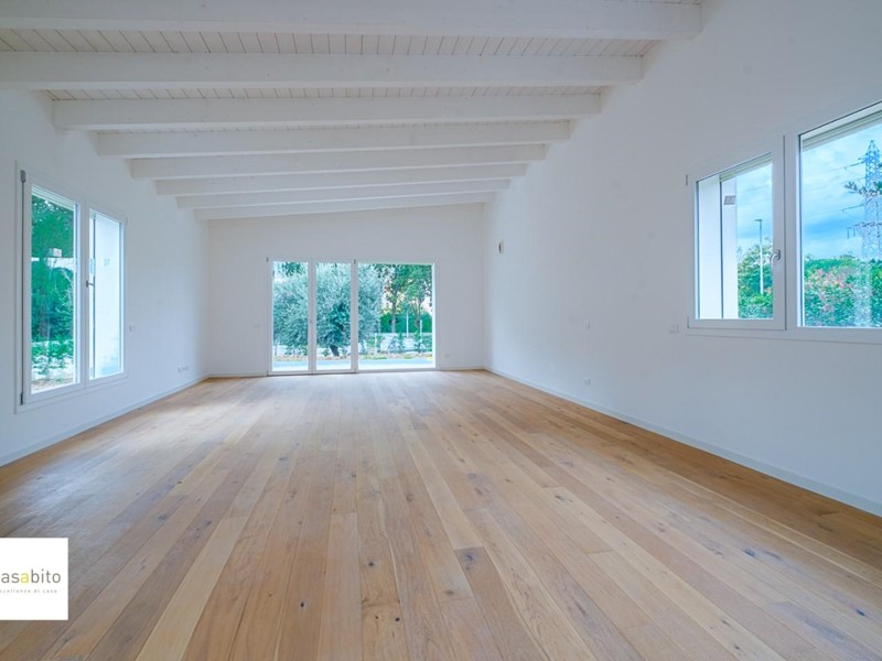 Distribuita interamente su un unico piano, la villa è libera su quattro lati e circondata da un giardino privato di 568 mq, che avvolge la casa in un’atmosfera di tranquillità e bellezza naturale. Il piano terra abitabile si estende per 159 mq, offrendo ampi spazi luminosi e moderni. Il grande soggiorno, arricchito da travi a vista bianche, è il cuore della casa, completo di predisposizione per una moderna cucina a vista, che potra’ essere installata secondo le preferenze dell’acquirente.