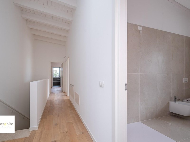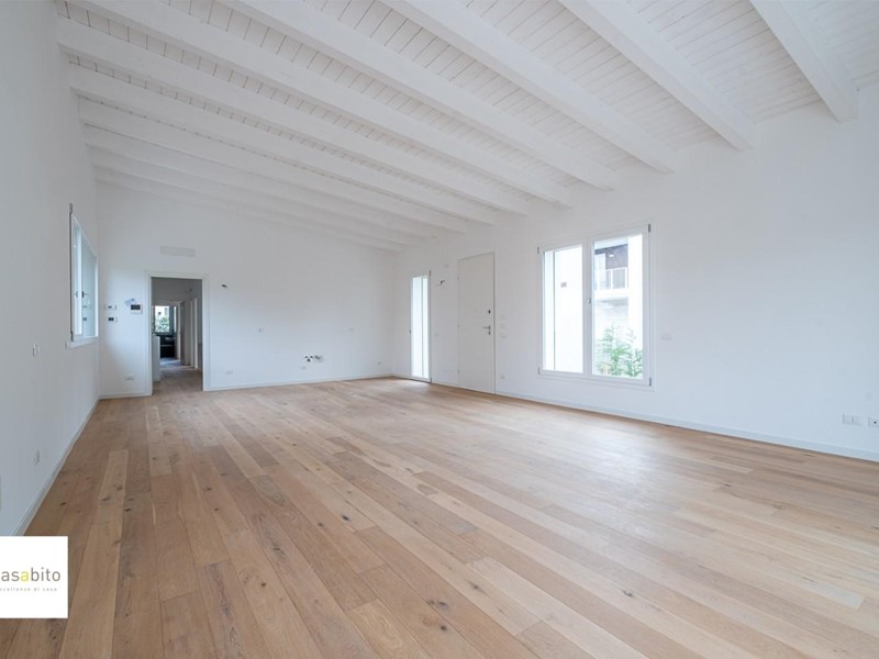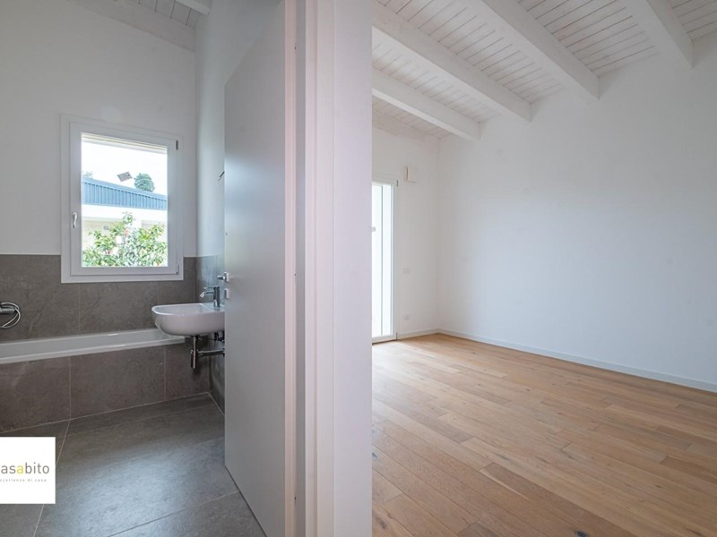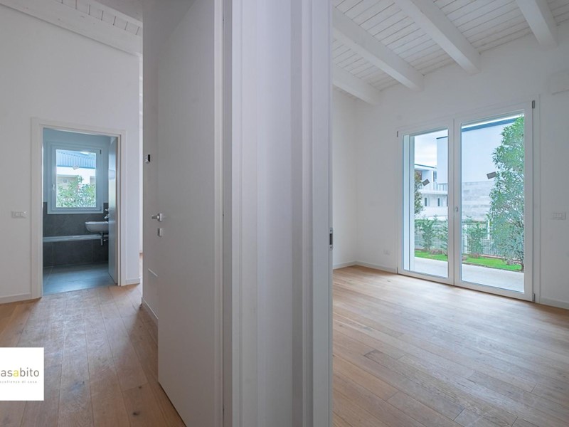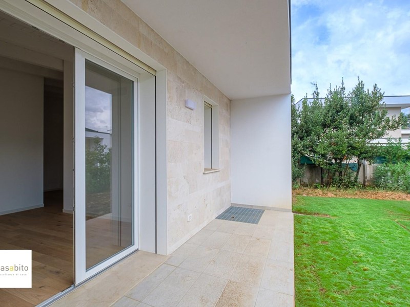 Le finiture sono di alto livello: pavimenti in gres effetto legno, serramenti in alluminio rivestiti in PVC, e un impianto domotico all’avanguardia per una gestione intelligente della casa.