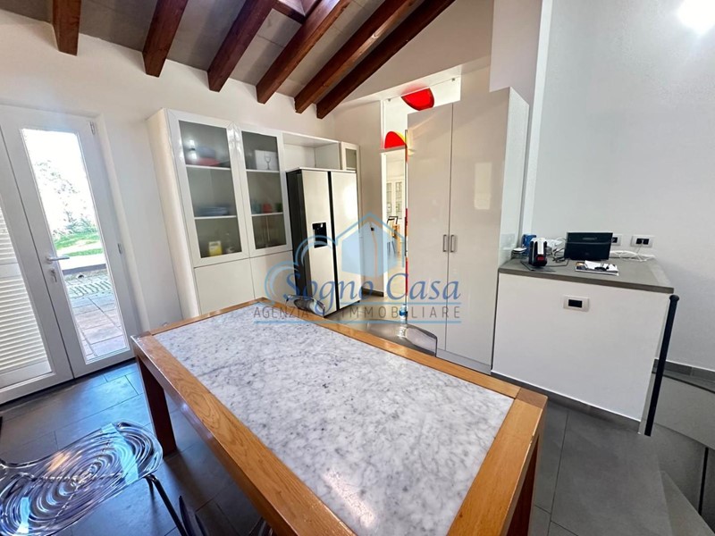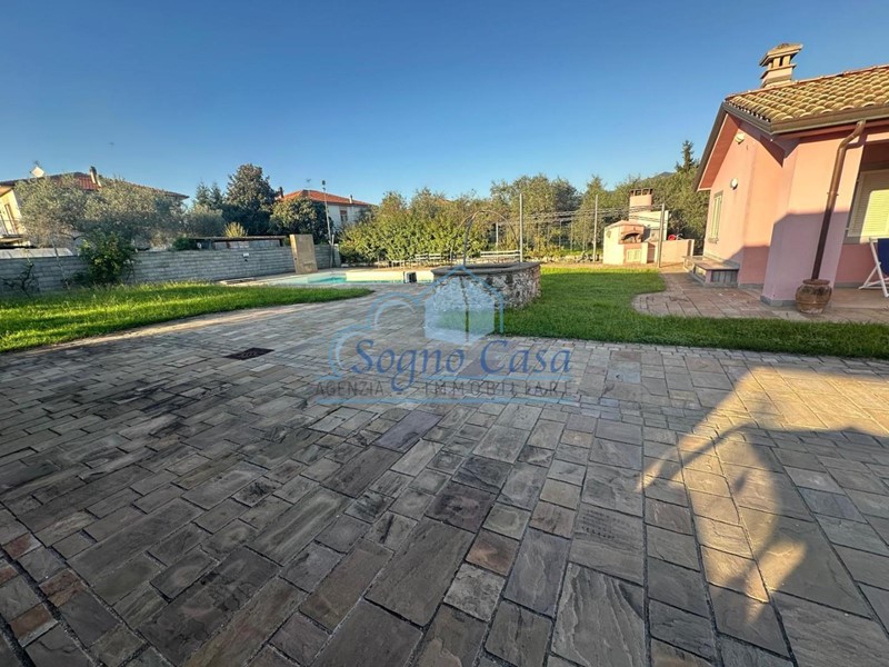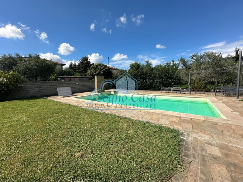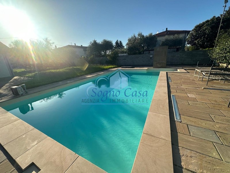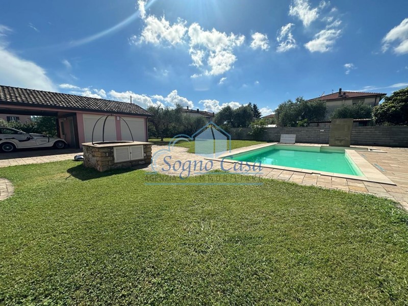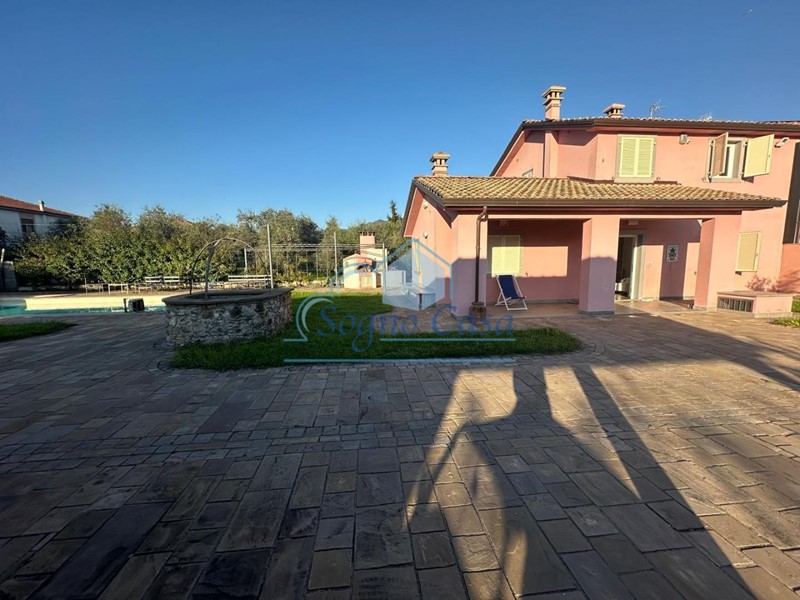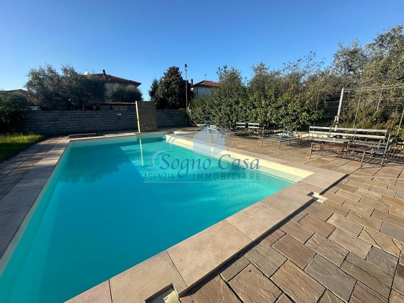 Completano la proprietà una dependance di circa 50 mq e un giardino di circa 2000 mq, arricchito da una splendida piscina. L'area esterna include inoltre posti auto interni e un cancello elettrico.