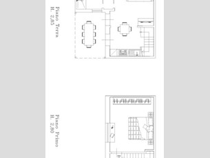 L'unità secondaria accatastata come civile abitazione si distribuisce anch'essa su due livelli. Al piano terra si trova una zona giorno con soggiorno e cucina, questi spazi sono serviti da un bagno, mentre al piano superiore la configurazione progettuale prevede una generosa zona notte occupata da una camera matrimoniale.