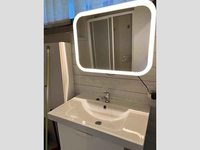 L'appartamento dispone di angolo cottura, sala con divano letto e due letti a castello, una veranda e un bagno. Dispone anche del posto auto del residence e della piscina condominiale.