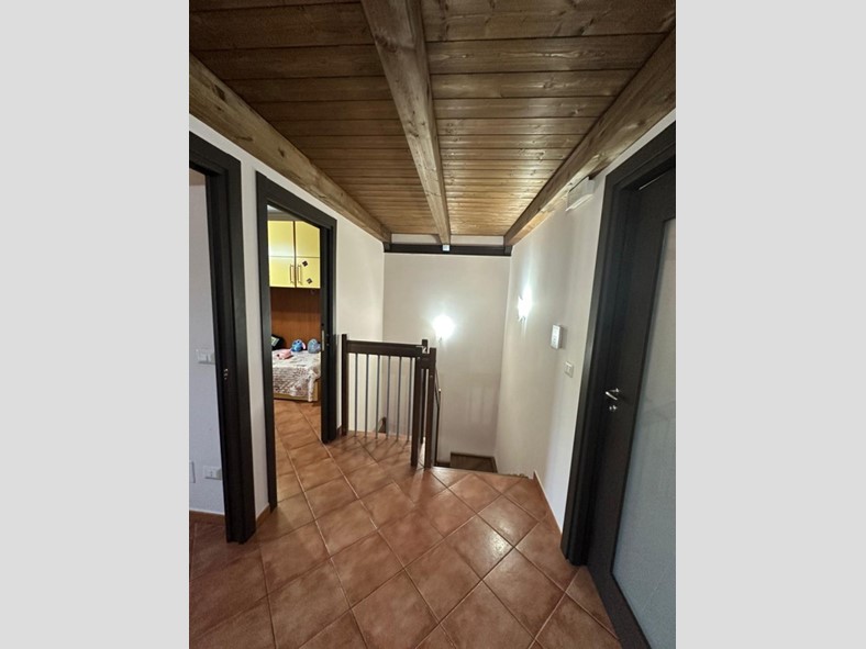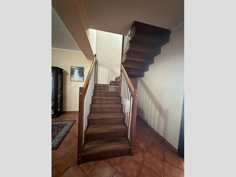 Salendo l'elegante scala, si accede al disimpegno del primo piano, che conduce a una spaziosa camera matrimoniale e a due camerette, dotate di balcone. Un secondo bagno ben rifinito arricchisce questo piano.