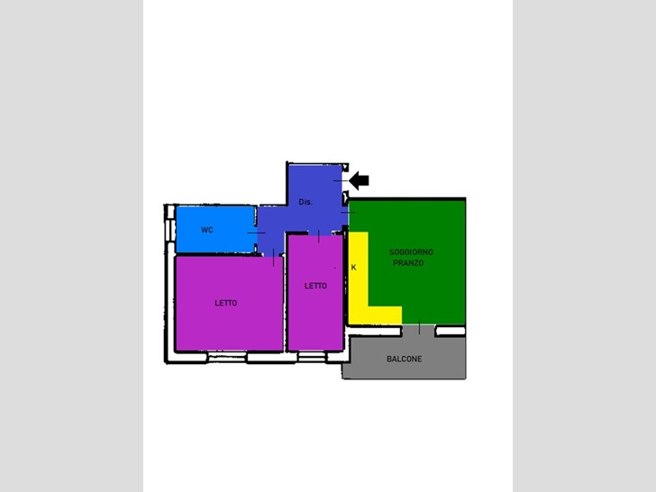 E’ composto da ingresso, soggiorno pranzo con cucina a vista ed accesso a balcone munito di vano lavanderia, due vani letto e bagno.
