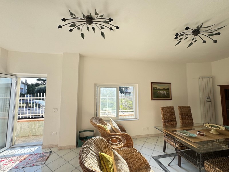 All'ingresso troviamo la sala con affaccio su ampia veranda di circa 4o Mq ideale per cene all'aperto, a seguire angolo cottura, disimpegno per accedere alla zona notte formata da camera matrimoniale, camera doppia e servizio.