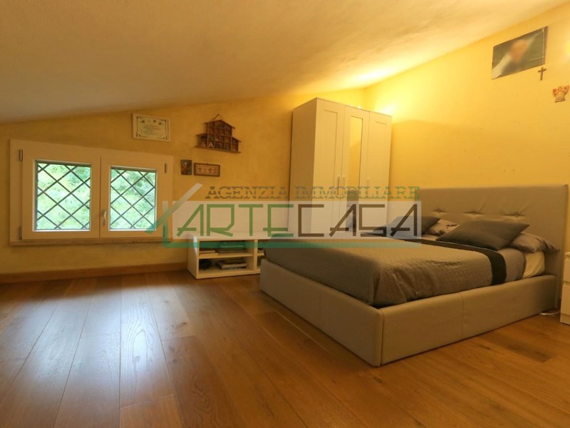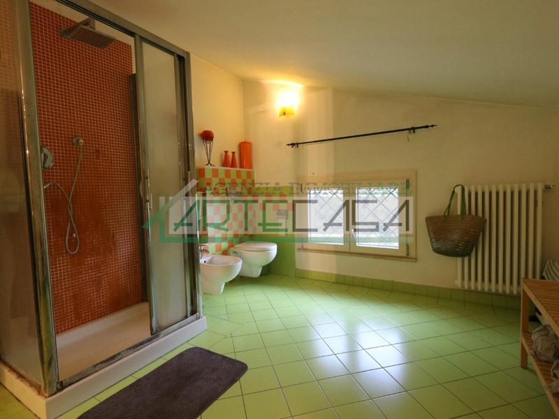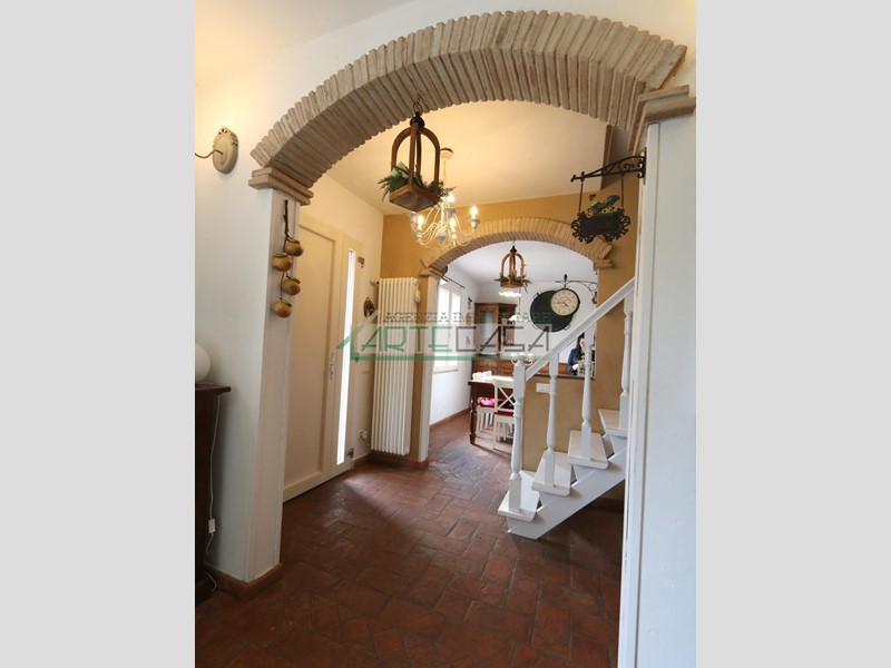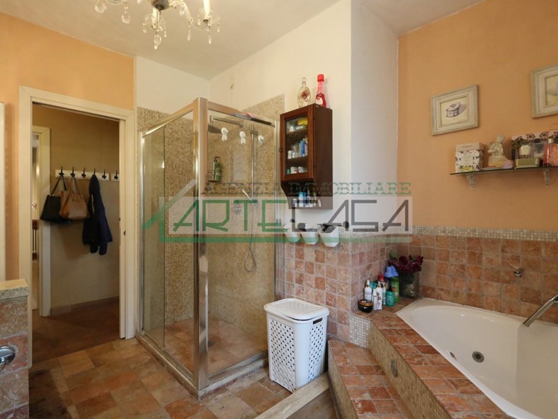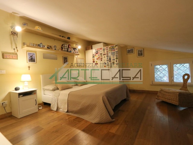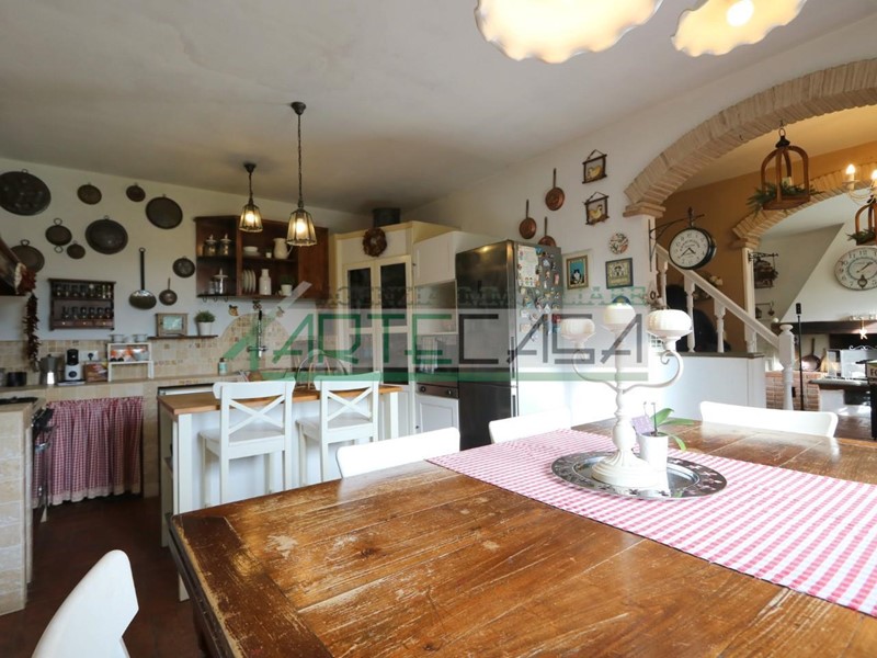 La villa, recentemente rinnovata e dotata di impianti per l'efficientamento energetico, si trova in un'area tranquilla e verdeggiante, con un giardino curato e un ampio terreno che include un oliveto e un frutteto. Grazie alla disposizione degli spazi, al piano terra sono stati ricavati nei locali presenti due appartamenti indipendenti, perfetti per ospiti o familiari. Al primo piano, la casa si apre con un elegante ingresso e soggiorno, una spaziosa cucina, una camera matrimoniale con cabina armadio, altro vano utilizzato al momento come stanza lavanderia, ma che all'occorrenza può diventare ulteriore camera; allo stesso piano è presente un bagno con doccia e vasca idromassaggio. Il piano sottotetto ospita tre camere aggiuntive e un bagno, offrendo ancora più spazio.
