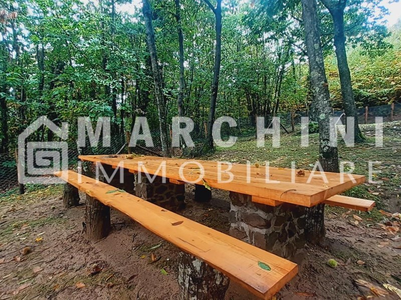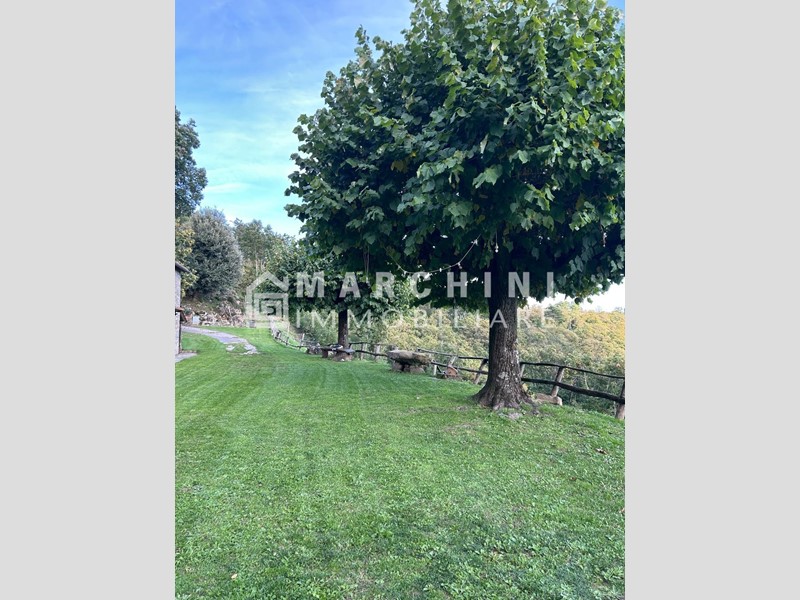 Esternamente il rustico è circondato da un parco con piante e castagni secolari e dal quale si può godere di una vista panoramica mozzafiato sul paesaggio sottostante.