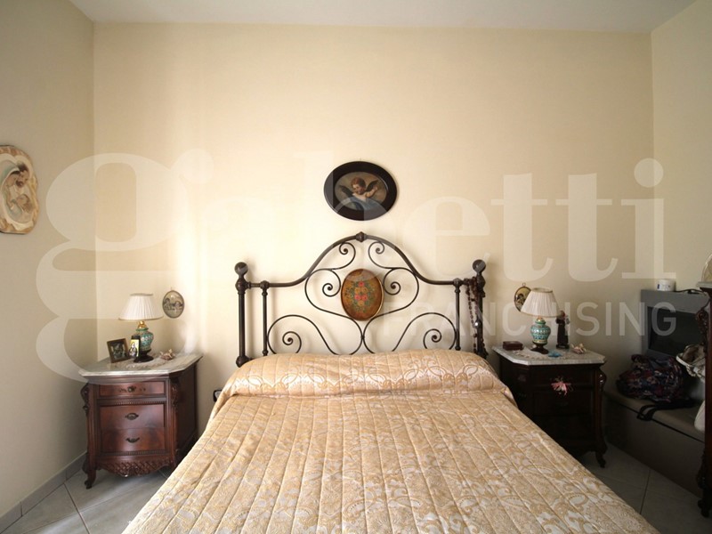 Gli ambienti interni, dotati di riscaldamento autonomo, sono attualmente distribuiti in cucina abitabile con soggiorno attiguo, disimpegno, due camere da letto e bagno con vasca idromassaggio; tutte le stanze hanno accesso diretto sui due ampi balconi che cingono il perimetro della casa.