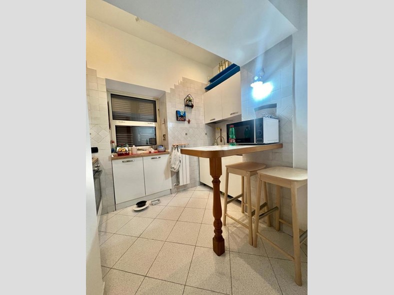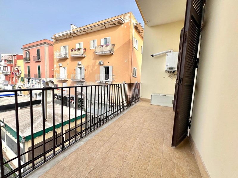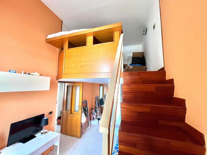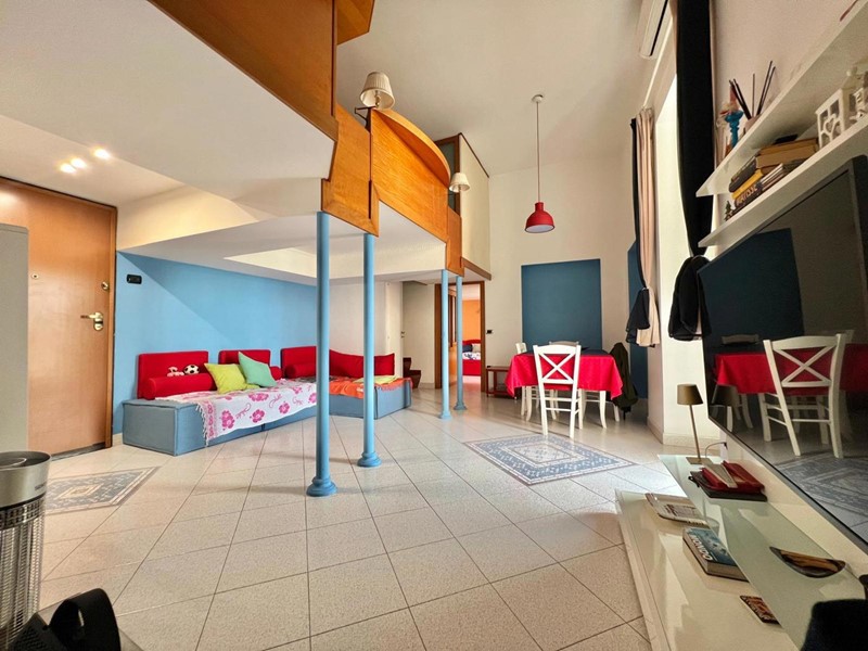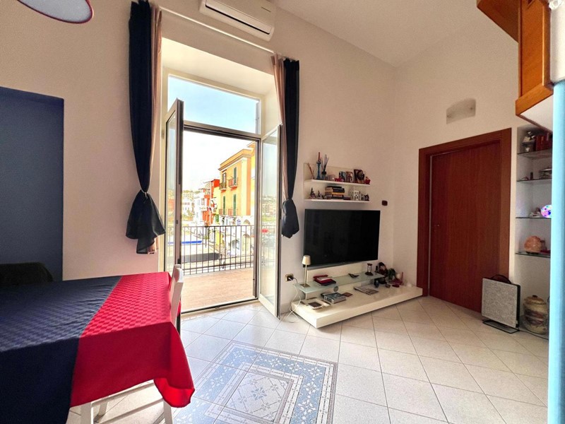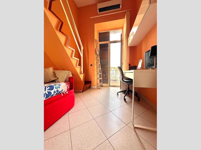 L'appartamento si compone di luminoso soggiorno, con soppalco, ideale per la zona notte, con cabina armadio e letto matrimoniale, piccolo vano ripostiglio, angolo cottura con finestra, bagno con balcone alla romana e cabina doccia, e una cameretta  con soppalco e con balcone terrazzato. La proprietà venta un balcone terrazzato con vista sul porto e sul centro  storico.