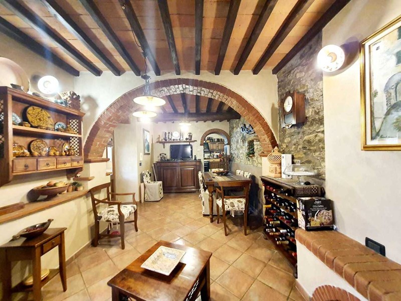 Scopri la tua nuova casa in una splendida porzione di villa ristrutturata, dove il fascino del sasso e del legno si fondono in un'armonia perfetta. Al piano terra, sarai accolto da un'ampia corte piastrellata che conduce all'ingresso principale, dove un salone spazioso e una cucina moderna ti aspettano per momenti indimenticabili. Al primo piano, due camere matrimoniali, un ulteriore salone e un servizio offrono comfort e spazio per tutta la famiglia.