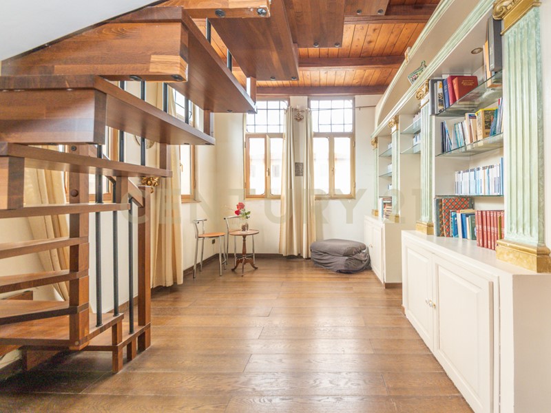 In vendita appartamento di circa 130 mq, situato in un elegante edificio dei primi del 900' con torrino, nel cuore di Bracciano centro, in Via Armando Sala L'immobile di classe energetica D, posto al secondo e ultimo piano, è composto da tre camere da letto, due bagni, una cucina abitabile e un salone con camino palazzetto diviso in due spazi, con ampie finestre essendo situato all interno del Torrino. Tutte le stanze con parquet e soffitto spiovente con travi di legno, dispongono di porte scorrevoli anch esse in legno e finestre anta ribalta sul soffitto, garantendo luminosità e comfort. Il palazzetto non dispone di ascensore e le scale per salire sono molto comode. La posizione è ideale: a pochi passi dalla stazione, con ottimi collegamenti verso le principali università della zona. L'Università Agraria si trova a soli 9 minuti a piedi, mentre il corso di Infermieristica di Bracciano è facilmente raggiungibile in pochi minuti. La stazione del treno, anch'essa nel centro di Bracciano, offre collegamenti per Roma in circa un'ora, rendendola perfetta anche per pendolari. Non ci sono spazi esterni, se non un piccolo giardino condominiale che ci accoglie quando si arriva davanti al portone storico di legno dell'edificio