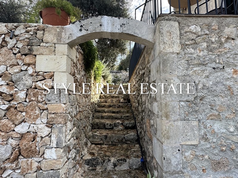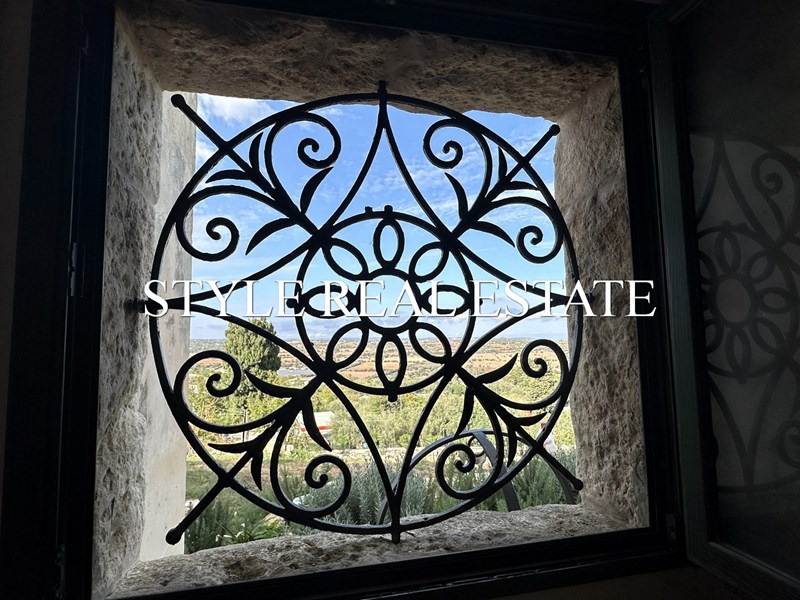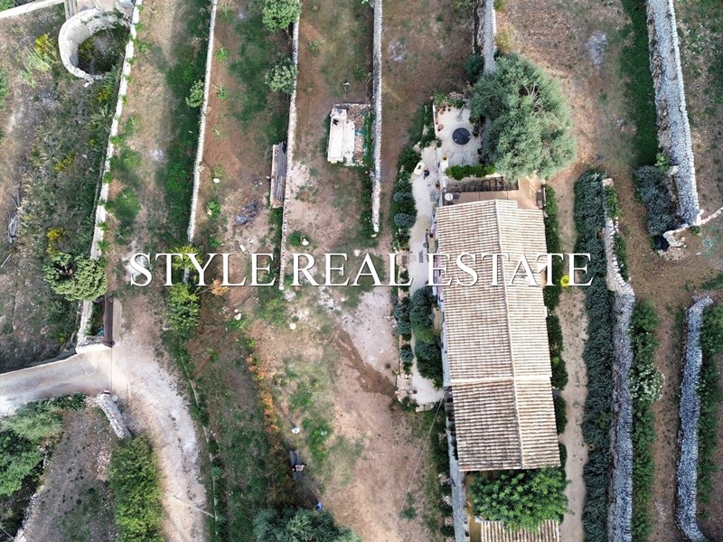 La proprietà comprende infine 11.950m2 di terreno circostante a terrazzamenti corredato da alberi di ulivo, carrubbi ed alberi da frutto. Sul terreno insistono inoltre un'unità collabente di circa 40m2 da ricostruire, una particolare grotta in pietra dell'epoca di costruzione ed una tipica vasca di raccolta acqua.