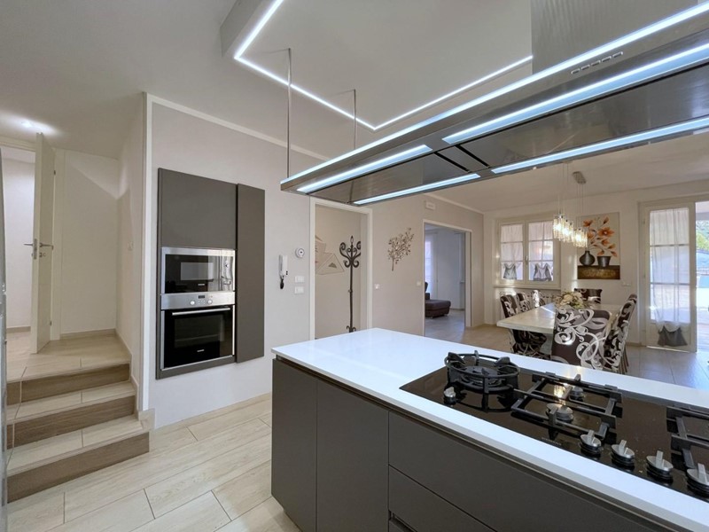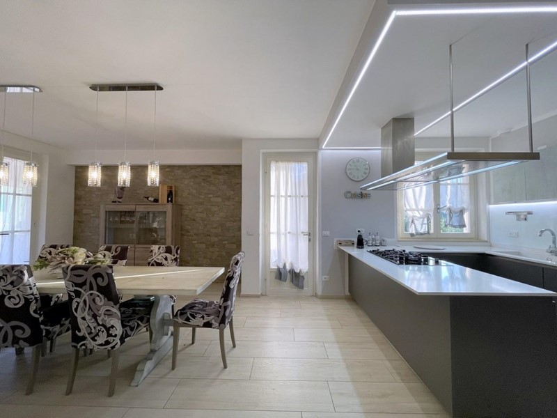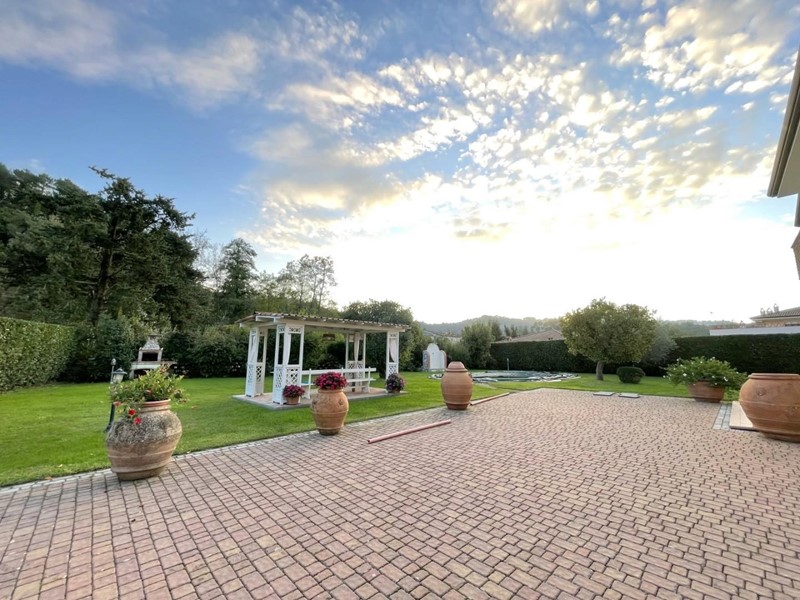 La villa si distingue per le sue finiture di alto livello e l'uso di materiali pregiati. Esternamente, il giardino che circonda l'intero immobile offre ampi spazi verdi, una veranda perfetta per godere delle giornate estive, una piscina privata e un forno a legna per le serate all'aperto. Il tutto è completato dalla possibilità di parcheggiare comodamente diverse auto nella resede privata.