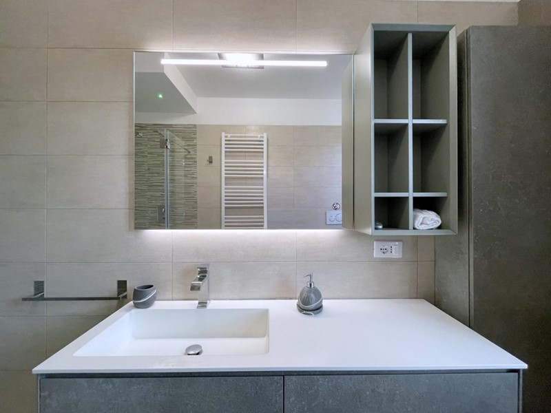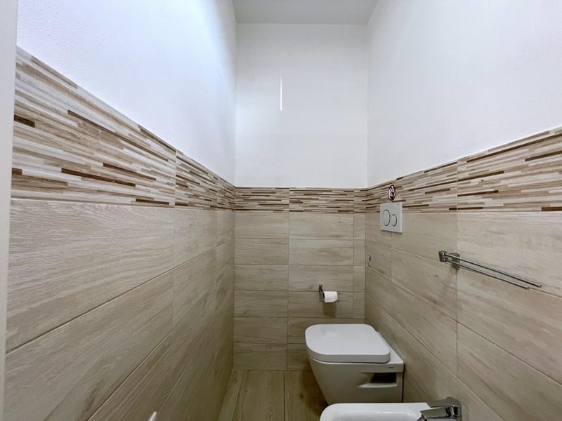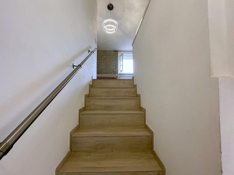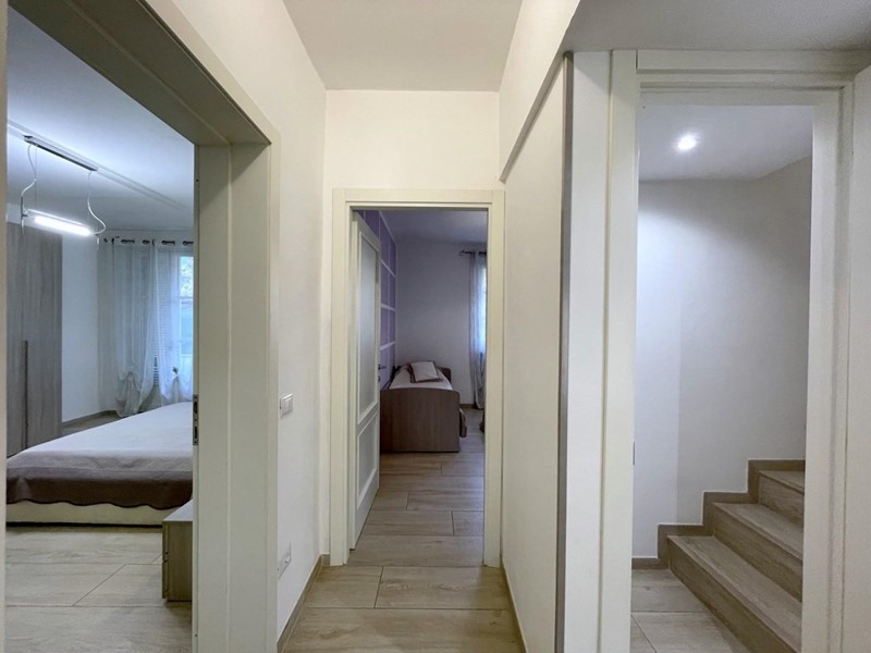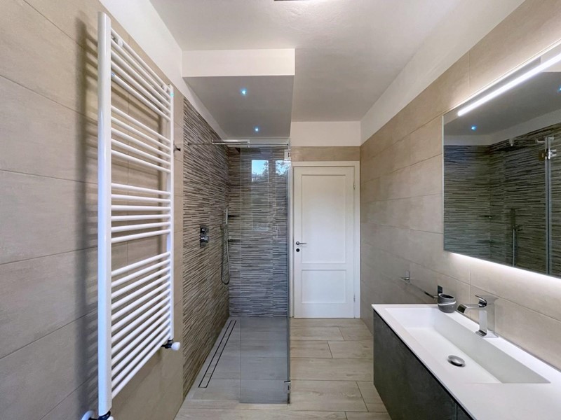 Il primo piano, accessibile attraverso una comoda scala esterna, presenta il secondo appartamento. Un luminoso open space accoglie una moderna cucina con penisola e un'ampia zona pranzo, da cui si accede a una terrazza abitabile con vista sulla natura circostante. La zona notte comprende tre camere matrimoniali, una delle quali con bagno en-suite, e un secondo bagno padronale con doccia dotata di cromoterapia, per un'esperienza di totale relax.