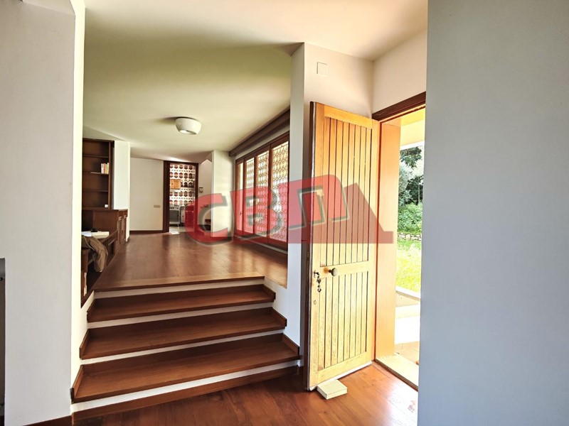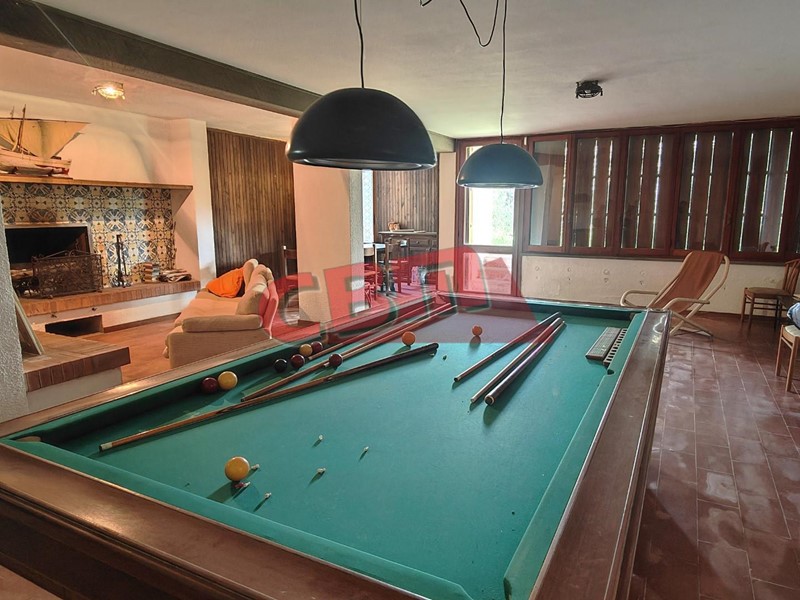 Dalle grandi terrazze di cui dispone la villa ad ogni piano si gode la vista sul mare e sul verde circostante, il grande e articolato salone con pavimento in teak accoglie e distribuisce gli altri ambienti del piano terreno,cucina abitabile, sala da pranzo, tre camere, doppi servizi; il piano superiore , che offre anche un ingresso indipendente, comprende un'altro grande ambiente terrazzato con varie possibilità di utilizzo ed altre camere di cui una con bagno en suite; il piano seminterrato comprende una grande taverna(sala biliardo)fuori terra che dispone anche di un altro ingresso indipendente dotato di un bel camino che crea un'atmosfora calda e rilassante, vari altri ambienti di servizio, fra cui una piccola cucina e un'altro bagno e infine l'accesso interno al grande garage.