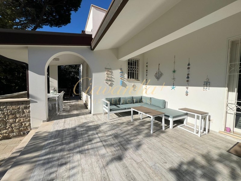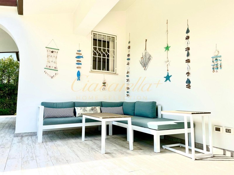-al primo piano una camera padronale con bagno privato e grande terrazza, camera matrimoniale e camera singola servite da un bagno. Giardino di ca 600 mq con comodo parcheggio, ripostiglio e ampi spazi verdi. La villa è caratterizzata da tante aperture ed elevate altezze interne che donano un notevole senso di spazio e luminosità. Immobile perfetto per trascorrere le piacevoli vacanze al mare e per la residenza tutto l’anno. La villa è dotata di un impianto domotico esteso a tutte le funzionalità interne ed esterne alla casa ovvero apertura/chiusura tapparelle, illuminazione, citofono, climatizzazione, irrigazione e sistema di allarme.