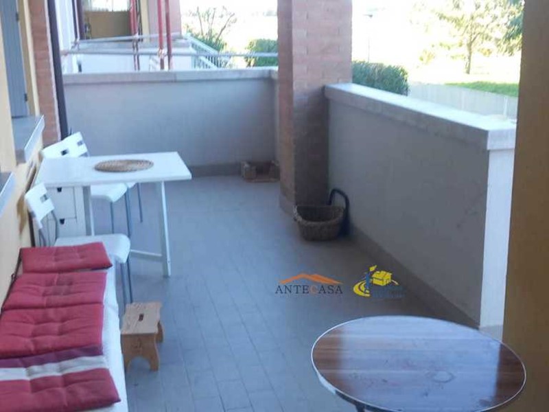 L'appartamento si presenta cosi' composto: zona giorno con angolo cottura, dalla quale si accede al terrazzo di pertinenza che si affaccia direttamente sul giardino di proprietà, camera e bagno.