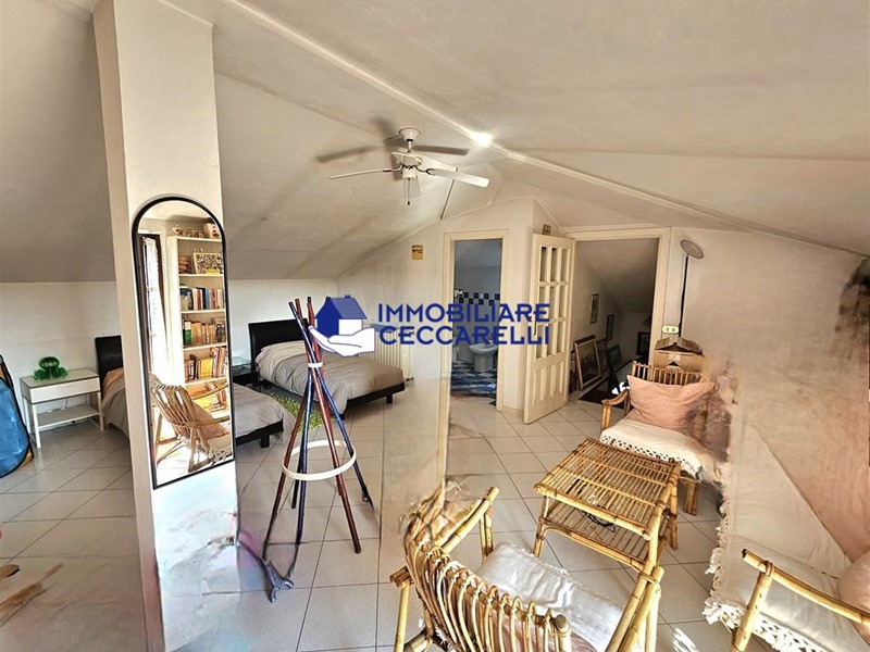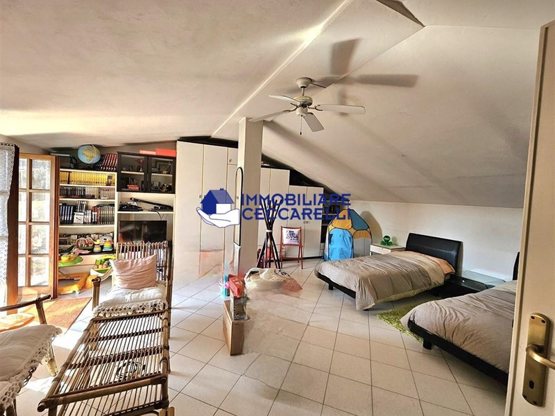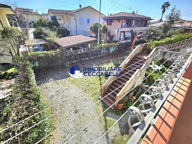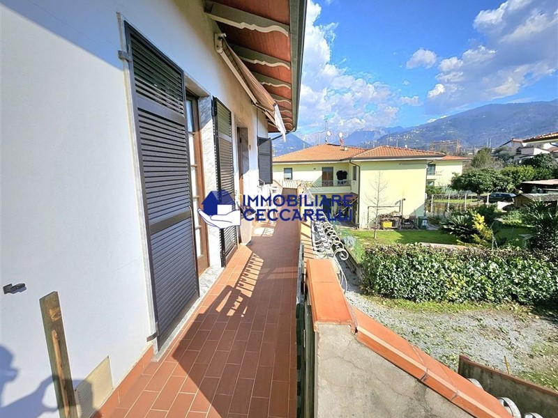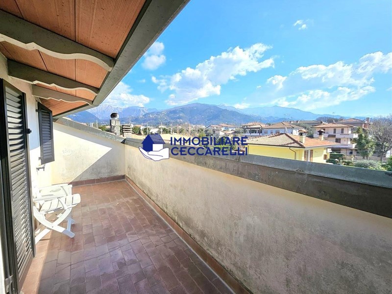 Massa - località Gioconda - in fabbricato quadrifamiliare appartamento di generose dimensioni libero su tre lati e con ingresso indipendente . Così composto : ingresso da scala esclusiva su grande balconata perimetrale, ampio salone-soggiorno, cucina abitabile, disimpegno notte, due bagni e tre spaziose camere da letto ; in mansarda ampio vano open space (eventuale quarta camera da letto) corredato di bagno, ripostiglio e terrazza a tasca con vista sulle Alpi . A completamento della proprietà una cantina e due posti auto.