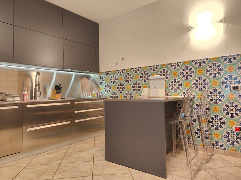L’ingresso alla proprietà avviene attraverso un curato giardino di 160 mq che si estende su due lati della casa, offrendo un’oasi di tranquillità e privacy. Al piano terra, si accede ad un ampio e luminoso salotto, affiancato da una cucina rifinita con eleganti ceramiche di Vietri. Sempre al piano, si trovano un comodo bagno e una splendida sala da pranzo, realizzata in una raffinata veranda chiusa a vetri in stile giardino d’inverno, una vera chicca che aggiunge un tocco di eleganza e luce alla casa.