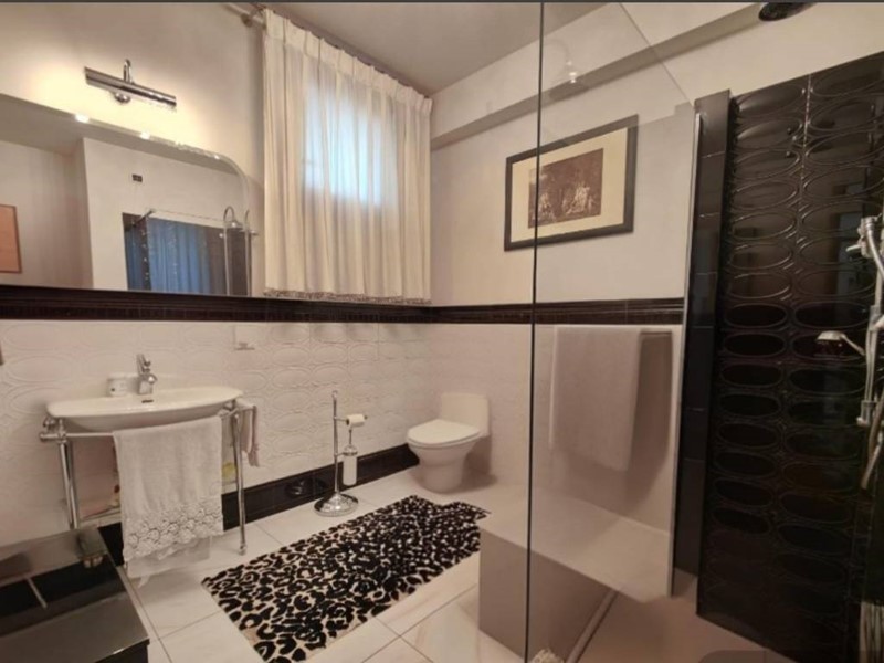 Salendo al primo piano, la zona notte offre tre ampie camere da letto, ciascuna dotata di balcone privato, e un secondo bagno finemente curato nei dettagli.