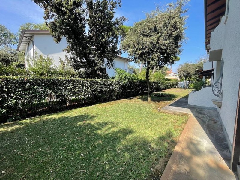 Forte dei Marmi, loc. Vittoria Apuana, a soli 400 mt dal mare, in bella zona residenziale, porzione di villa bifamiliare disposta su due livelli fuori terra e internamente composta da: ingresso, ampio soggiorno/pranzo da cui si accede a comoda veranda pranzabile, ripostiglio, cucina abitabile con dispensa e accesso al giardino, 1 camera e 1 bagno a piano terra; 1 camera padronale con 1 bagno interno, altre 2 camere matrimoniali, 1 ulteriore bagno, lavanderia/armadi e balconi al piano primo. Climatizzata. Ampio giardino di circa 450 mq su tre lati con gazebo, doccia esterna e posti auto interni.