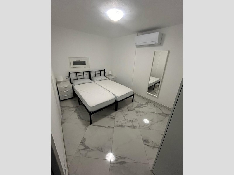 Appartamento bilocale di 59 mq situato al primo piano, composto da: ingresso in soggiorno con cucina a vista, camera da letto matrimoniale e bagno con doccia.