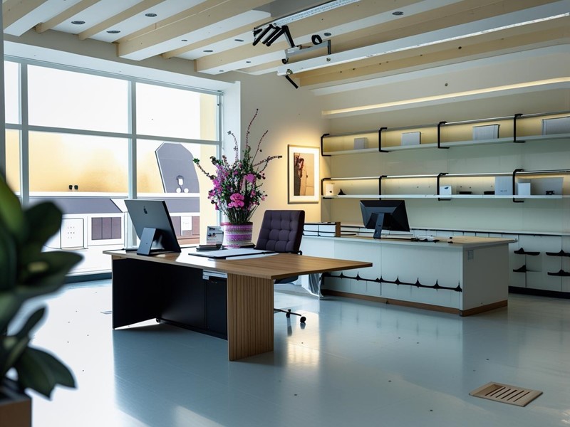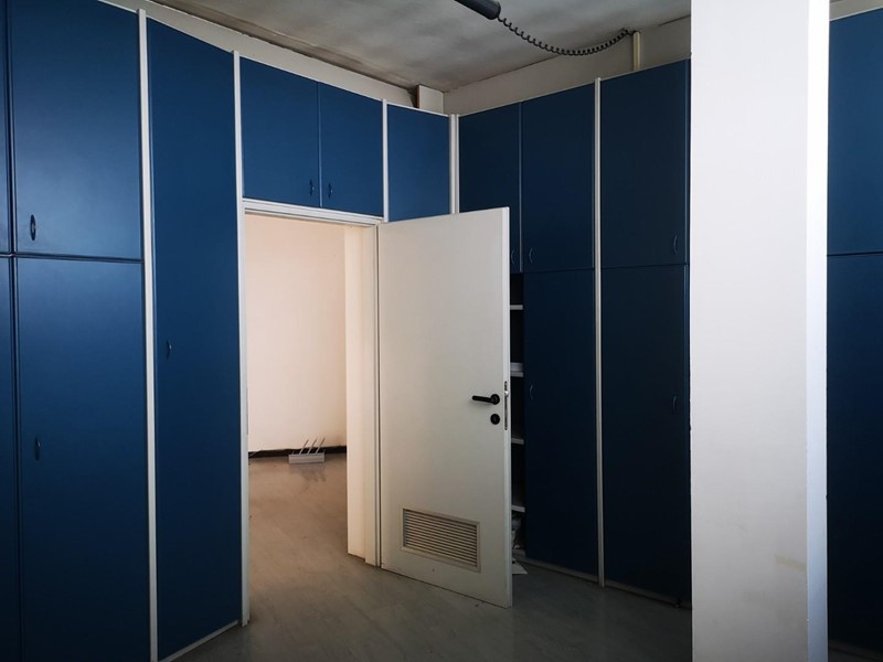 E’ composto da un primo grande ambiente in OPEN SPACE e alcune salette o postazioni-ufficio, che possono essere mantenute o modificate per adeguare gli spazi alle proprie necessità. Dispone di un servizio igienico con antibagno e bagno e inoltre da un ampio locale ad uso magazzino o stanza archivi con finestre lucifere, all’interno del quale è montato il corpo macchina dell’impianto clima centralizzato, da rimettere in funzione.