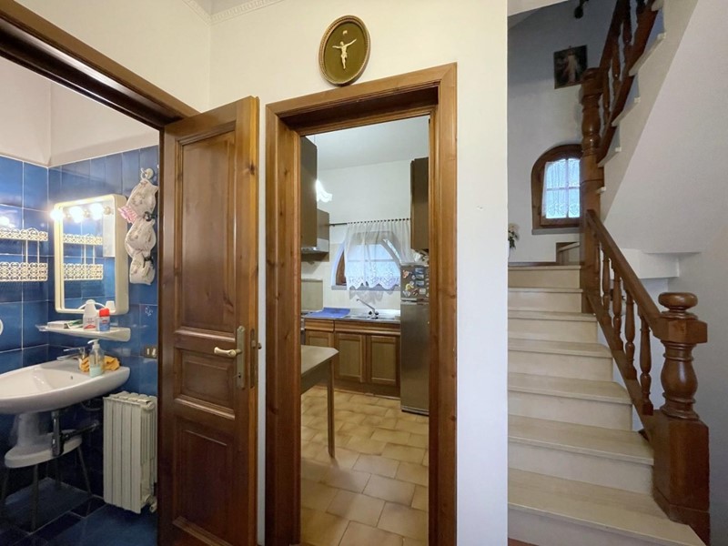 L?ingresso principale avviene attraverso il giardino e un elegante patio. Al piano terra si trova la luminosa zona giorno, composta da un ampio soggiorno, un cucinotto e un tinello in veranda, un bagno di servizio con doccia, e una lavanderia.