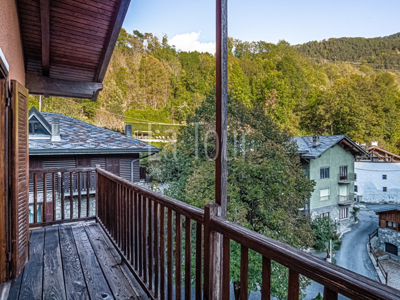 L'ingresso dell’appartamento presenta un ambiente versatile e armonioso. Lo spazio, caratterizzato da una soffitto con travi in legno a vista, è organizzato in tre aree funzionali: un'accogliente zona conversazione, un moderno angolo cottura, e un bagno completo ben accessoriato.??Sul lato sud dell'abitazione si trova la camera da letto, la quale beneficia di un accesso al balcone panoramico. Questo elemento funge da liaison tra gli spazi interni e il maestoso scenario alpino circostante, offrendo agli occupanti la possibilità di immergersi nel paesaggio montano.