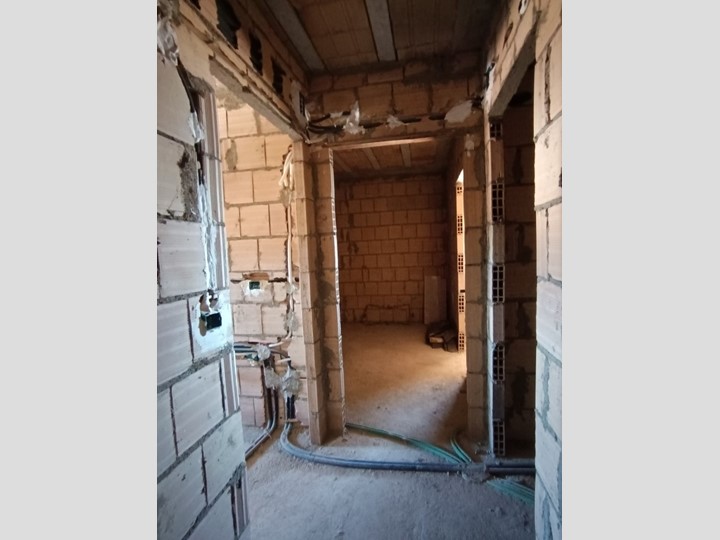 L'appartamento - di 179 mq, utili interni oltre balconi e terrazza, con infissi e serrandine nuovi e balconi già pavimentati - possiede la predisposizione di tutti gli impianti (manca l'inserimento dei fili elettrici) come da foto, ma il resto è completamente da ultimare; Comprende un'ampia zona giorno, un ripostiglio, 3 camere da letto, 2 bagni.