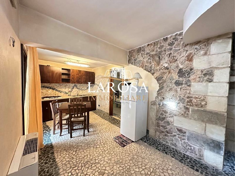 All’ingresso, alcuni gradini conducono alla spaziosa stanza principale, dotata di un camino in pietra. Proseguendo, si apre un ampio salone con cucina open space, arricchito da una porta finestra che dà accesso al cortile interno. Le vetrate a vista offrono una luminosità naturale, creando un angolo di tranquillità.