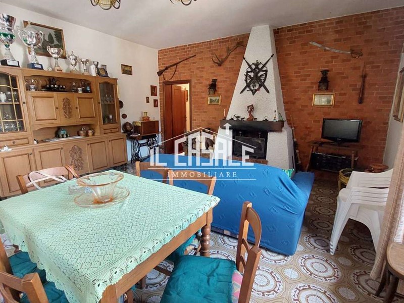 L'abitazione è mossa su più livelli ed ha più accessi. Tramite resede privato, antistante la zona parcheggio (circa 3-4 posti auto), si accede all'ampio e luminoso soggiorno con camino; dal disimpegno è possibile scendere alla cucina o passare nella zona notte composta da due camere matrimoniali e bagno. Una delle due camere è dotata di terrazza, collegata mediante scala esterna al giardino.