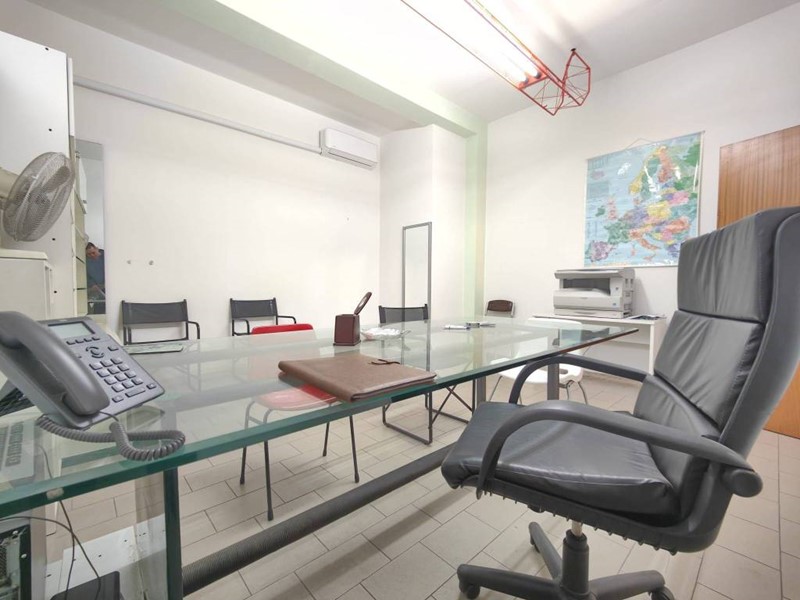 Il capannone presenta nella parte anteriore gli uffici ed i servizi oltre a stanza riunioni e stanza campionario ed una stanza blindata costruita per custodire la pelle di alta qualità che veniva trattata.
