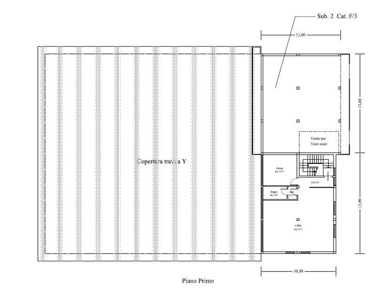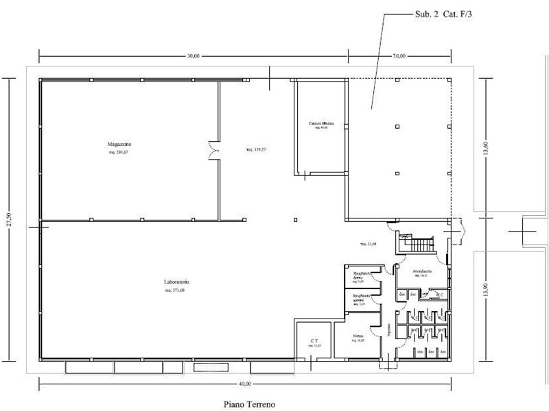 Il laboratorio è diviso nel centro da un colonnato ed è alto 4,30 metri. Attualmente è diviso in tre spazi, quello più grande, il laboratorio dove era installata la manovia, l’aggiunteria ed il magazzino.