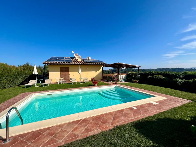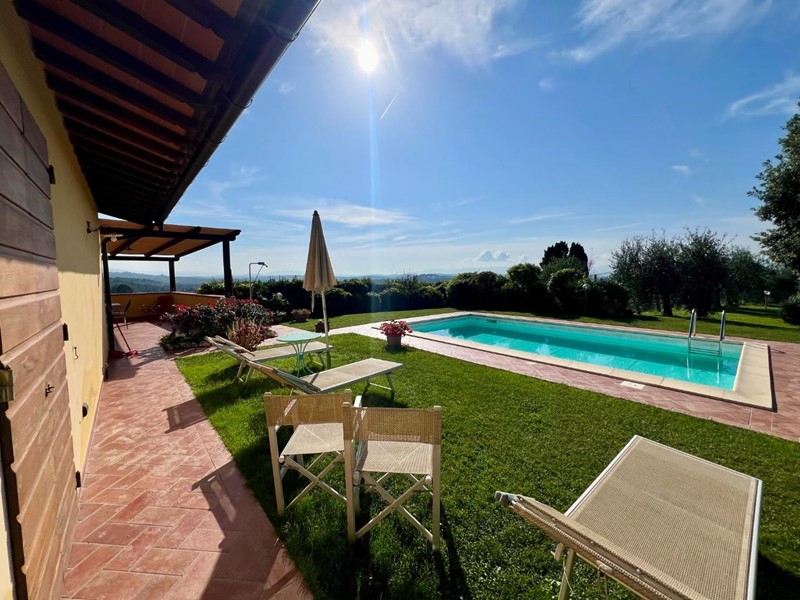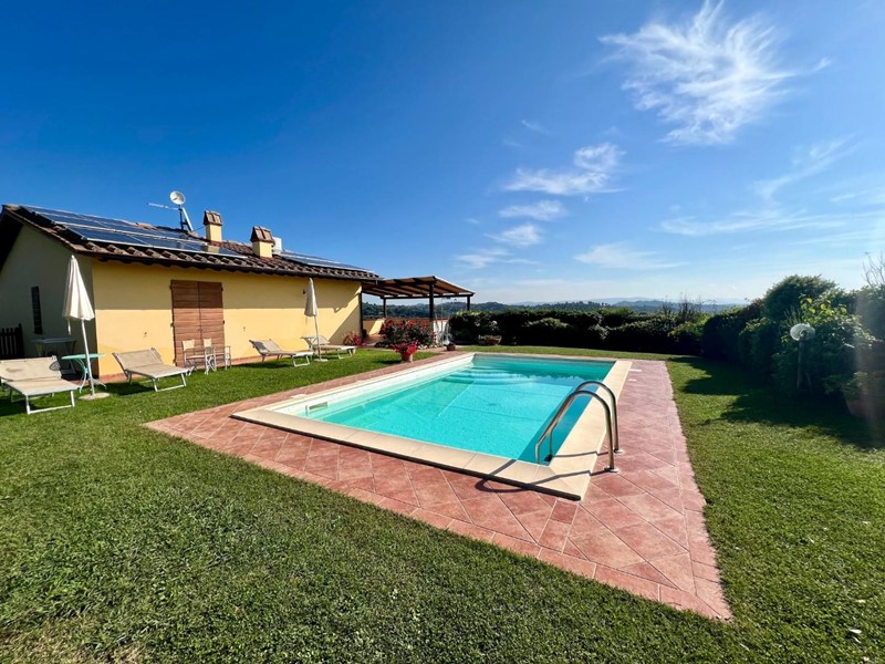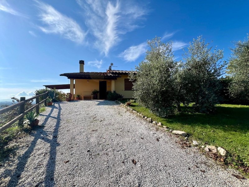 Proponiamo in vendita questa bellissima casa singola di circa mq 108 posta in posizione panoramica con vista sulle colline. L' immobile completamente indipendente libero su quattro lati e sviluppantesi esclusivamente su di unico piano, è stato completamente ristrutturato nel 2013 e vanta di finiture di pregio oltre che spazi esterni invidiabili. Circondato da circa 4 ettari di terreno di pertinenza tutto recintato in parte a giardino, in parte adibito a posteggio auto e nella parte più scoscesa destinato a bosco e coltivato ad oliveto (circa 400). Internamente l'abitazione si sviluppa tutta al piano terra ed è composta da ampio soggiorno con cucina in open space e camino, disimpegno notte, due ampie camere e bagno finestrato con doccia. Dalla cucina si accede esternamente ad una meravigliosa e suggestiva terrazza molto grande che affaccia sul panorama mozzafiato, ideale per godersi piacevoli momenti conviviali. Per concludere la bellezza degli spazi esterni troviamo un'incantevole piscina sul retro della casa in posizione riservata e assolativa.