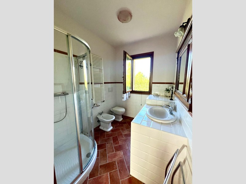 Per completare invece gli spazi accessori, al piano seminterrato troviamo un locale deposito/garage con bagno, ideale per essere utilizzato come deposito di attrezzi agricoli oltre che per la parte tecnologica dell'impiantistica.