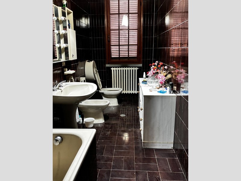 Un disimpegno conduce alla zona notte dove si trovano la camera padronale con bagno privato, ulteriori due camere e la stanza da bagno.
