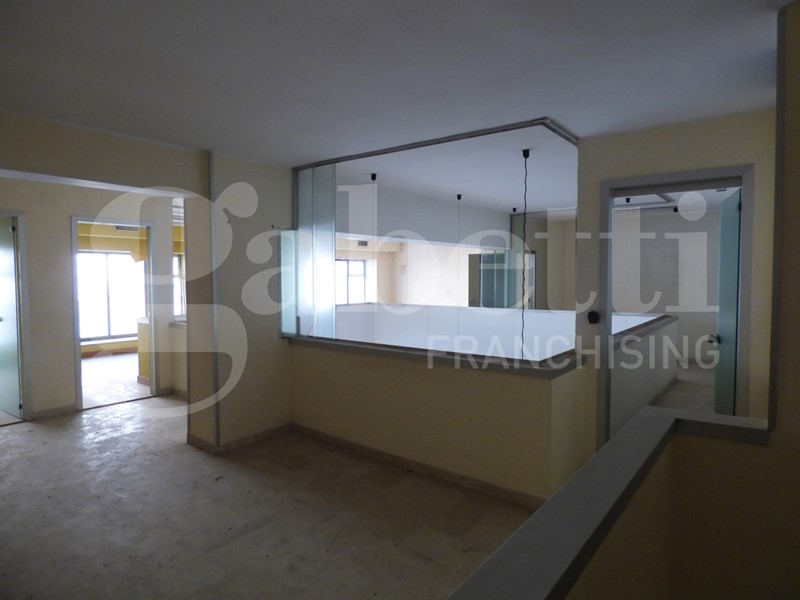piano ammezzato --> al servizio del piano commerciale, accessibile con scala interna, di superficie di circa 140 mq, ove sono ubicati i servizi e più vani dotati di ampie finestre prospicienti il Corso Umberto;