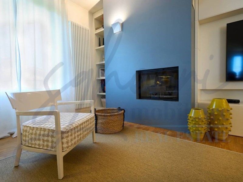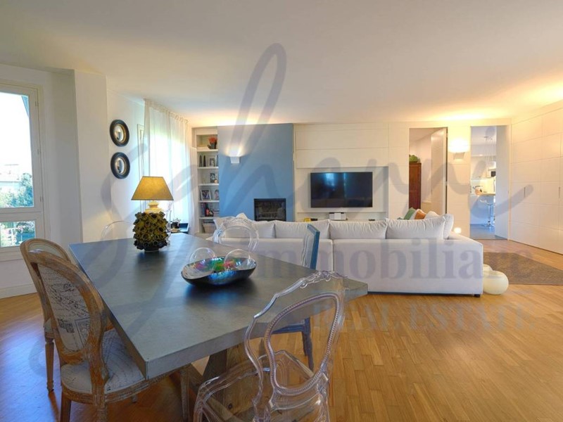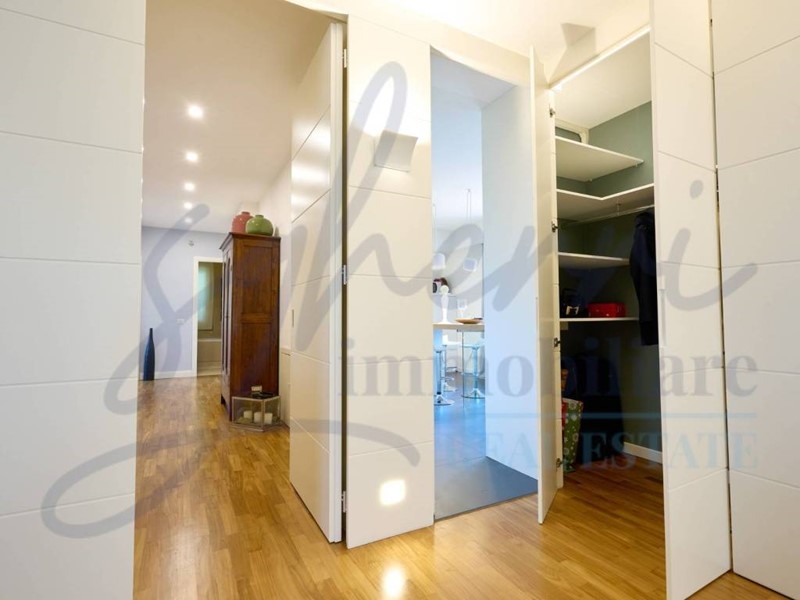 L’appartamento si adagia tutto su un piano, è di ampia superficie e si mostra a chi entra in tutta la sua eleganza e luminosità. La zona giorno caratterizzata da un grande soggiorno con grande divano e da una ampia zona pranzo ha due pareti arredate con boiserie “nasconde” sorprese ovvero un guardaroba, il locale tecnico/ripostiglio, le porte della cucina e dell’ingresso della zona notte e per finire, un armadio.