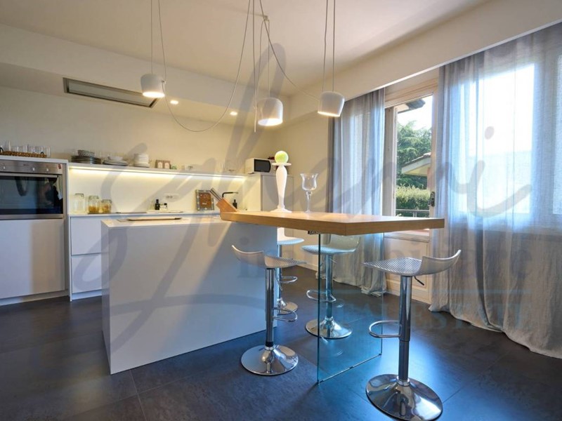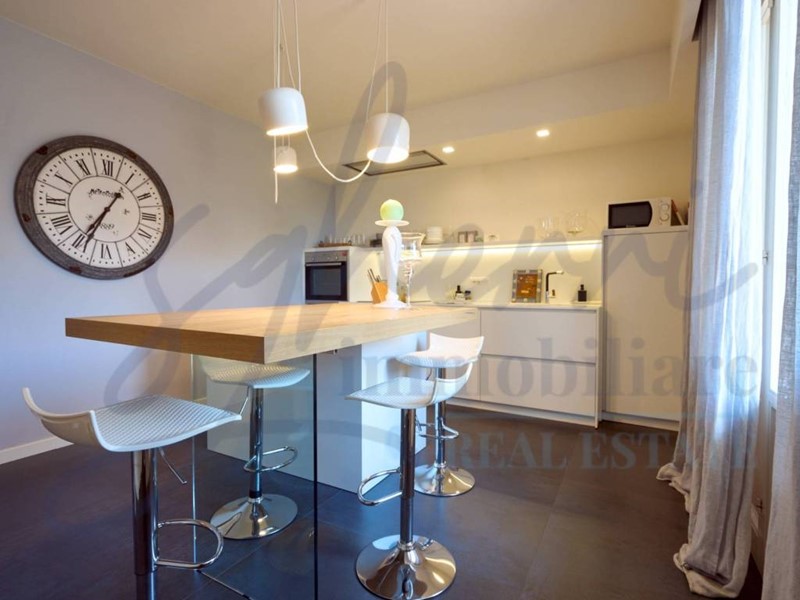 La cucina, essenziale, ma completamente fornita, è luminosa avendo la porta finestra per il suo comodo balcone ed una penisola dove potersi accomodare per intime colazioni oltre che l’accesso per la lavanderia.