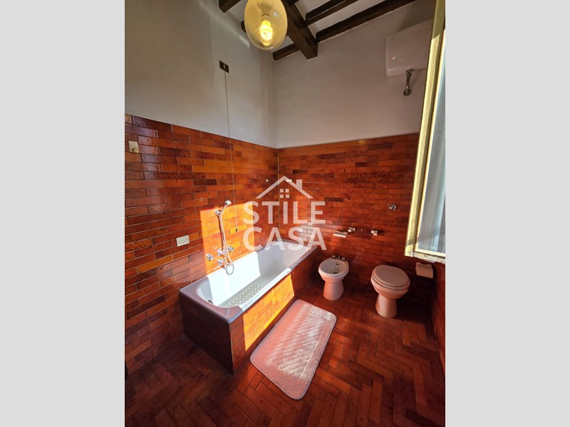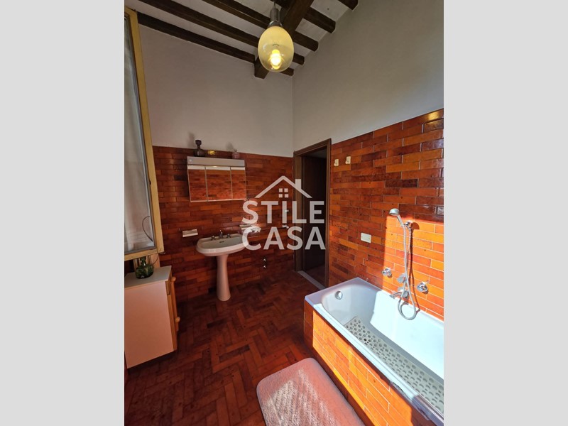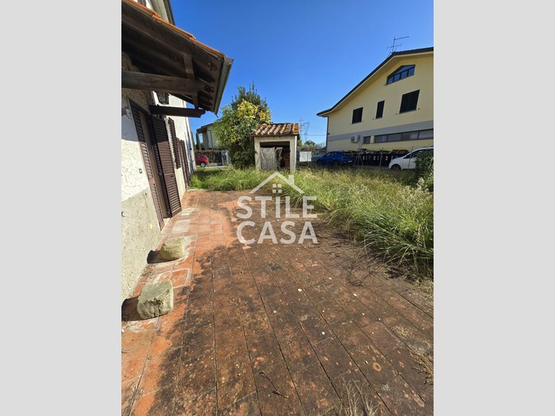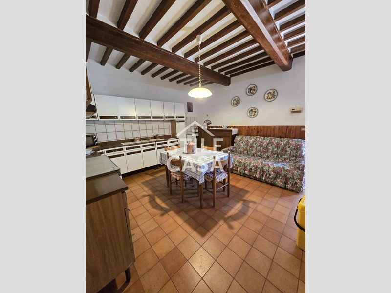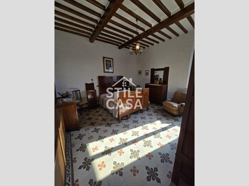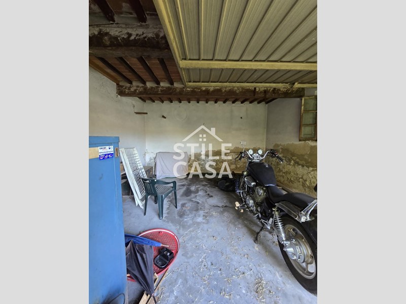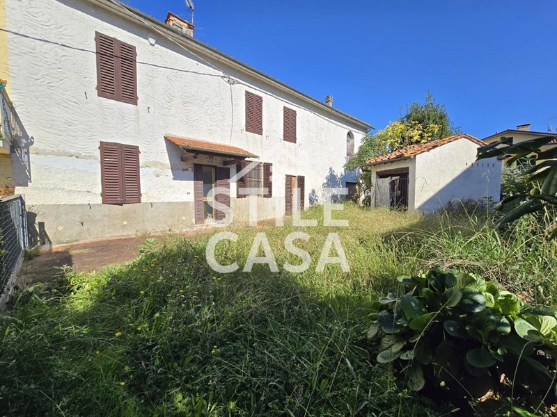Si entra nella proprietà, completamente recintata, da cancello carrabile. Sul fronte della casa si trova il giardino privato di circa 150 mq sul quale insiste un annesso ad uso legnaia e un pozzo. Alla casa si accede da portone ed è composta al piano terra da cucina abitabile, grande vano ad oggi adibito a cantina ma accessibile dalla cucina, disimpegno soggiorno e ripostiglio, al primo piano, che si raggiunge da comode scale, si trova la zona notte coposta da due camere matrimoniali con doppia esposizione, ampio disimpegno oltre che da bagno con doccia vasca e finestra. in aderenza all'immobile locale di sgombro, con lavanderia wc. E attaccato alla casa garage di circa 30 mq e fienile posto al primo piano accessibile ad oggi solo dall'esterno. Essendo in aderenza all'edificio è possibile, con una buona ristrutturazione rendere queste stanze comunicanti con l'abitazione principale. La casa ha gli infissi esterni in legno, quelli interni in legno vetro doppio, è abitabile anche se gli impianti sono da rivedere e necessita di alcuni lavoretti. Buona struttura, buone condizioni del tetto. Il riscaldamento della casa è alimentato al momento da gasolio, è allacciato all'acquedotto. L'immobile è a qualche km dall'ingresso dell'autostrada di Chiesina Uzzanese e dalla ferrovia di Pescia. Zona ben servita ben collegata. Ideale per famiglie numerose. Ottima esposizione