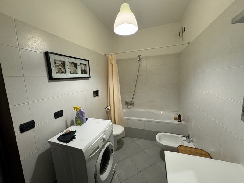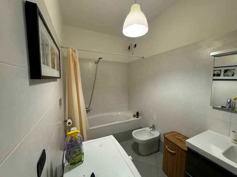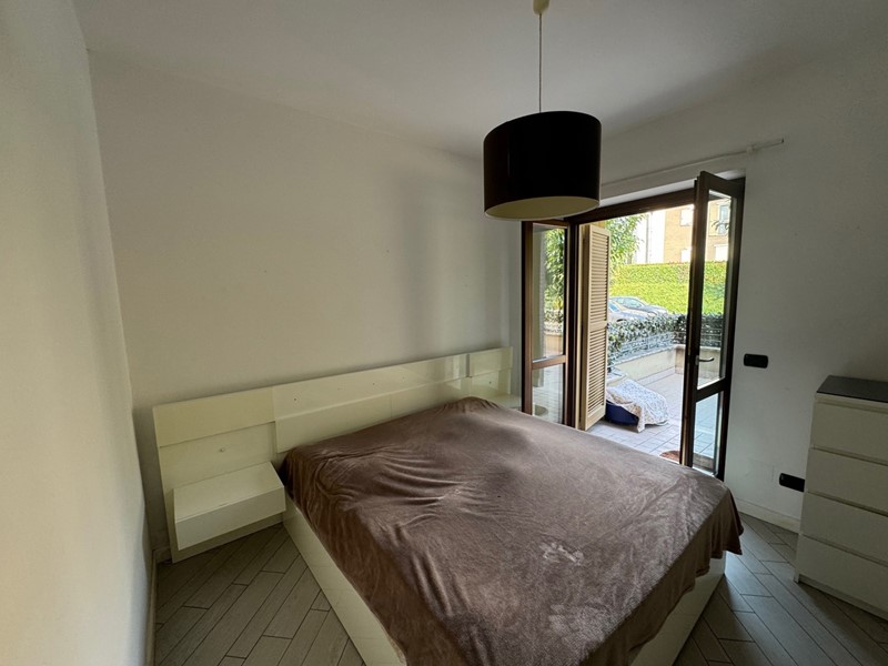 L'appartamento dispone di una camera da letto con cabina armadio e una cameretta, un bagno moderno, un ripostiglio e un luminoso soggiorno singolo con angolo cottura. Il terrazzo offre una vista panoramica sulla città, ideale per momenti di relax e socializzazione.