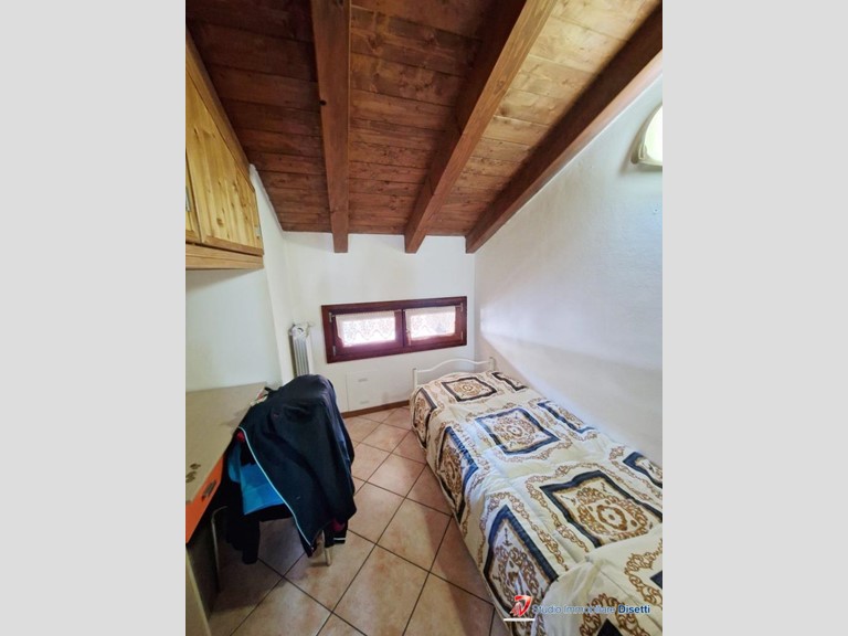 Villetta a schiera composta al piano terra da accogliente soggiorno con caminetto ed angolo cottura, al piano mansarda da due camere con bagno, al piano sotto da una camera con bagno e ripostiglio. Completano l'interessante unità corte privata e box. - Maggiori Dettagli: Porta blindata, Camino