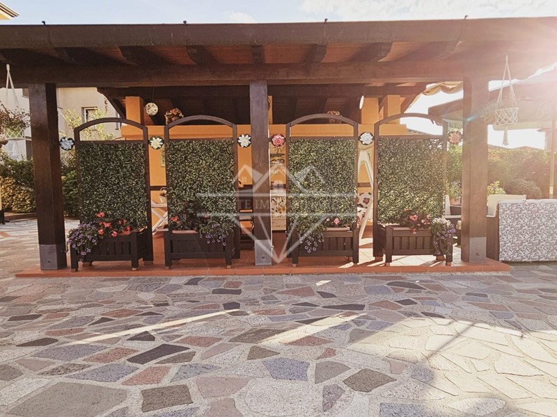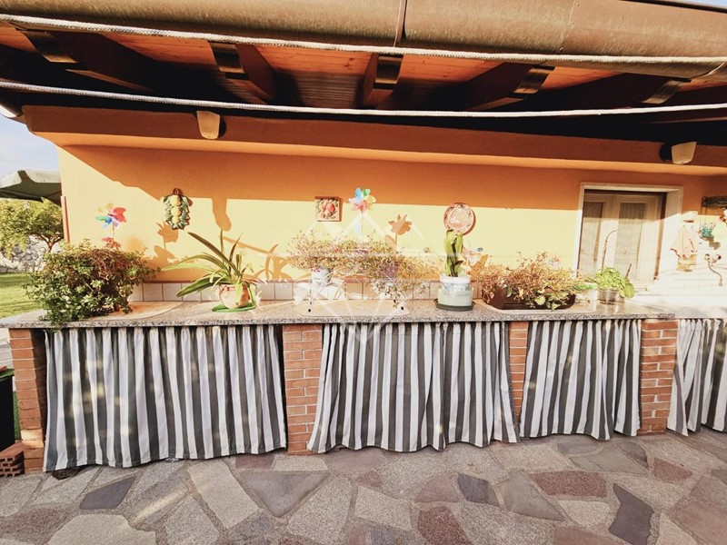 L'esterno della villa è altrettanto affascinante: il grande giardino circostante offre ampi spazi all'aperto, perfetti per momenti di relax o per accogliere pranzi e cene in compagnia. Un bel portico coperto, aggiunge un tocco di charme, creando un angolo ideale per godersi il paesaggio.