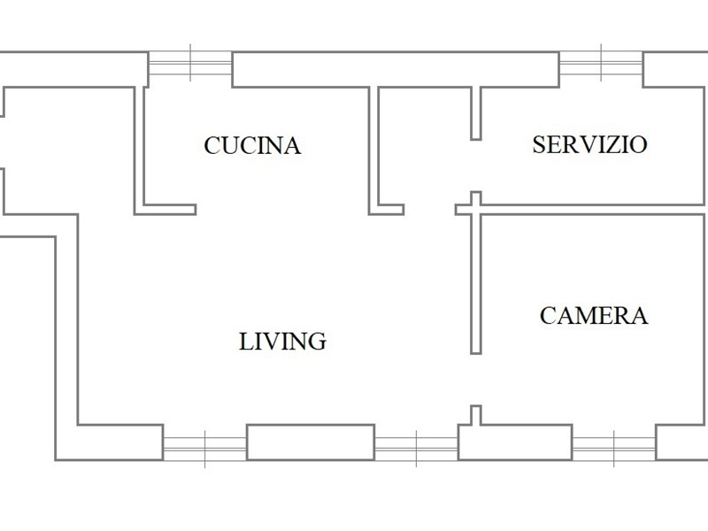 L'immobile è così suddiviso: ingresso, living ampio e luminoso con pratico angolo cottura, camera matrimoniale, servizio.
