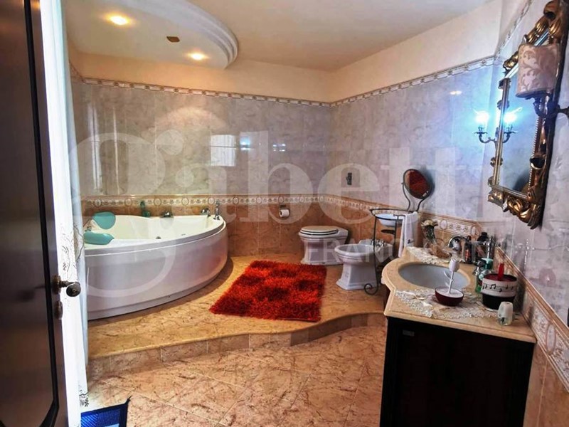 L' immobile si compone al piano terra di ampio garage (mq. 75 ca.) oltre un bilocale con bagno ; al piano primo appartamento con rifiniture di pregio composto da 4 vani e doppi servizi .
