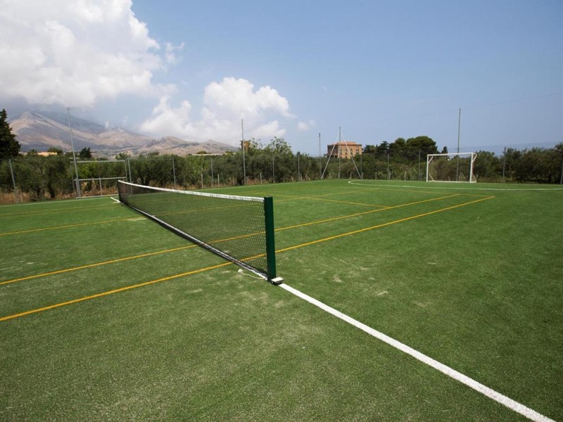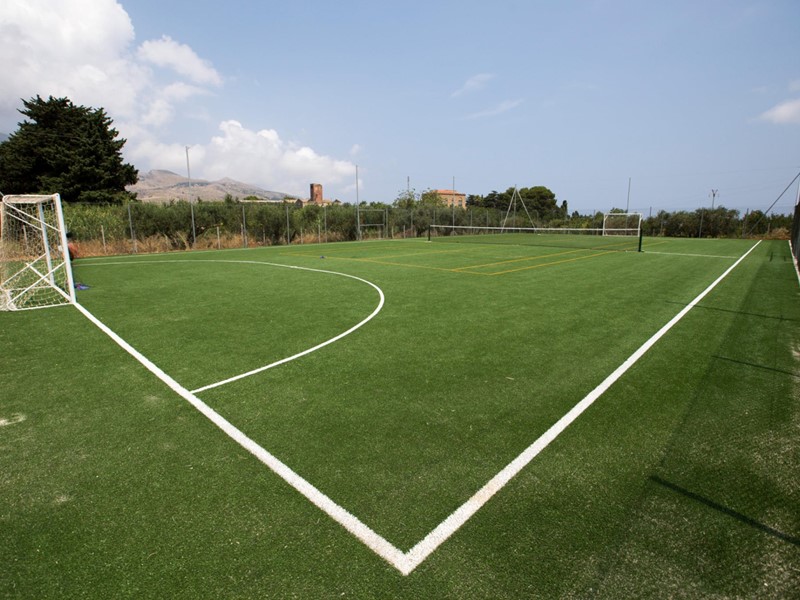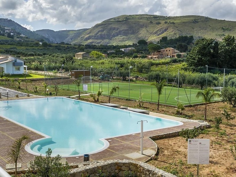 La villa dispone di un giardino esclusivo, decorato con piante ornamentali, e di un’area parcheggio pavimentata in basolato. All'interno del residence, i residenti possono usufruire di una piscina con area relax, idromassaggio e spazio per bambini, oltre a un campo polivalente per attività sportive comuni.