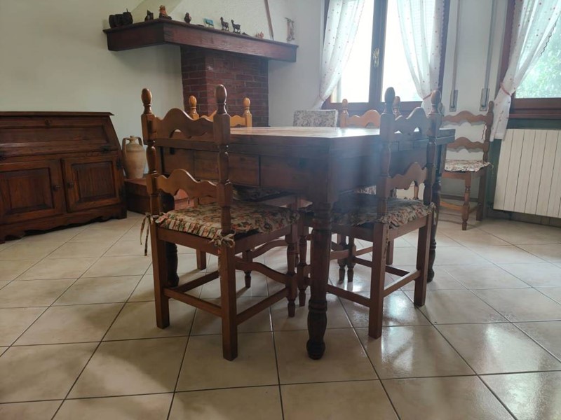 Questa, che ha altezze di circa 3,10 metri, ha l’entrata da pubblica via da resede a comune e da un portico con resede esclusiva si accede nell’ingresso/soggiorno di ampie dimensioni. Da questo si accede alla cucina con caminetto ed al ripostiglio/dispensa.