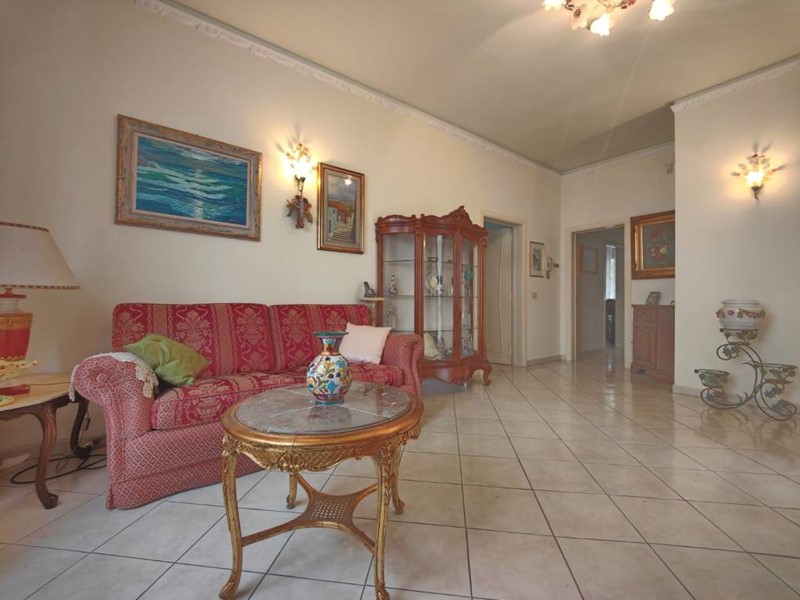 La villa, che splende per luminosità in ogni ambiente, è suddivisa orizzontalmente con un appartamento al piano terra di tre camere ed uno a piano sottostante di due camere, catastalmente ed urbanisticamente suddivisi.