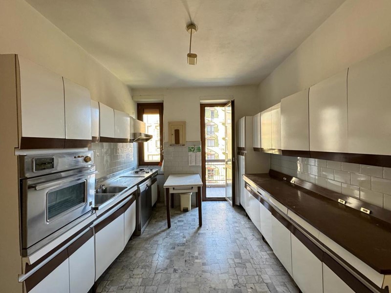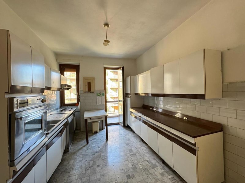 L'appartamento è cosi disposto: doppio ingresso, triplo soggiorno, cucina abitabile, quattro camera da letto, tre bagni, due ripostigli.